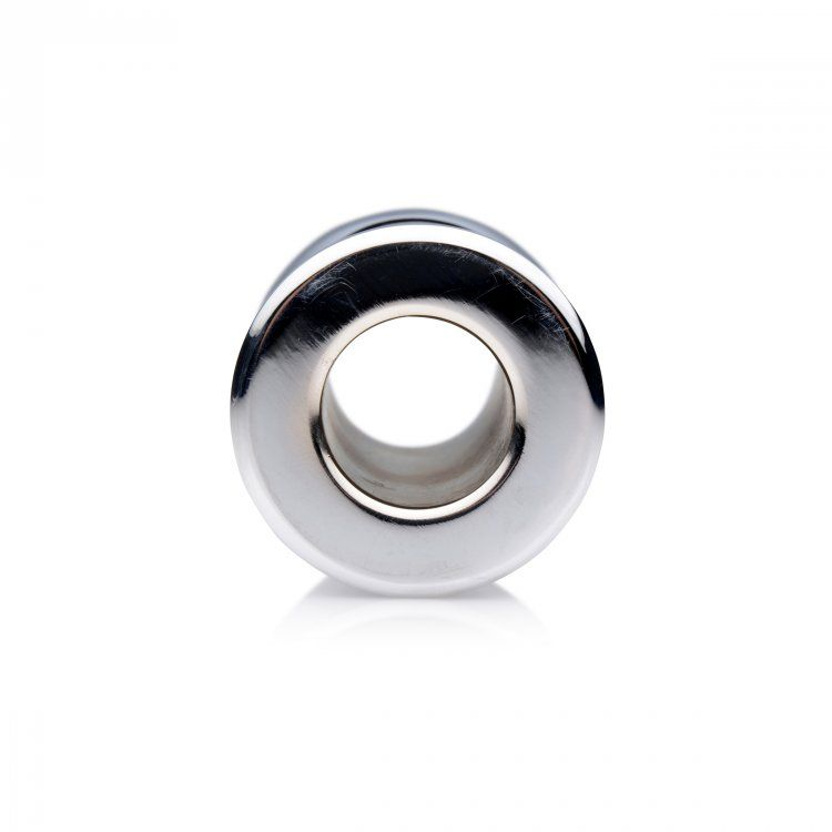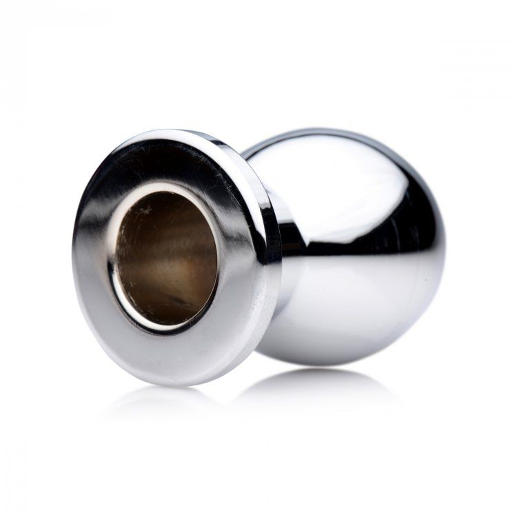 Look deep inside with this hollow anal plug made of metal! Use it with a partner to give them a glimpse into you most intimate regions or see what can fit into the center tunnel. The nickel-free aluminum alloy facilitates a smooth insertion as this anal dilator spreads you open. Because it is non-porous it can be used with any type of lubricant and sanitizes thoroughly with warm water and mild soap or toy cleaner.Measurement: 2.4 inches in total length 2.15 inches insertable length 1.55 inches in diameter. Hollow core is .75 inches in diameter.Material: Aluminum alloy