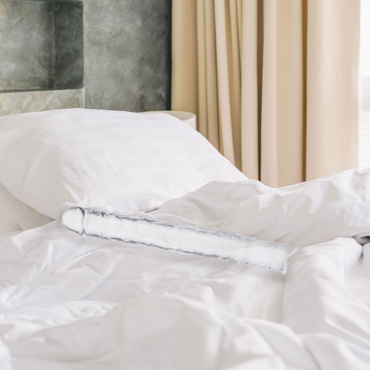 This is the perfect sexy toy for couples or solo fun from Me You Us.Its flexible yet firm and either of its ends can be used to target all of your favorite pleasure spots. The clear dildo has a smooth silky finish that feels sensual as it penetrates. Explore deeper with this contoured dual-ended dildo that features not one but two very satisfying realistic tips. Durable and flexible it's the perfect toy for lovers new and old.The translucent color is sexy and provides an extra touch of realism to turn you on visually. The elongated shaft is flexible enough to bend but firm enough maintain its shape. Its combination of flexibility and firmness allows it to be used for people with a variety of body shapes sizes and preferences. Measurements (approx.)Length: 15inc / 38cmInsertable Length: 15inc / 38cmGirth: 5inc / 12.7cmWeight: 420g