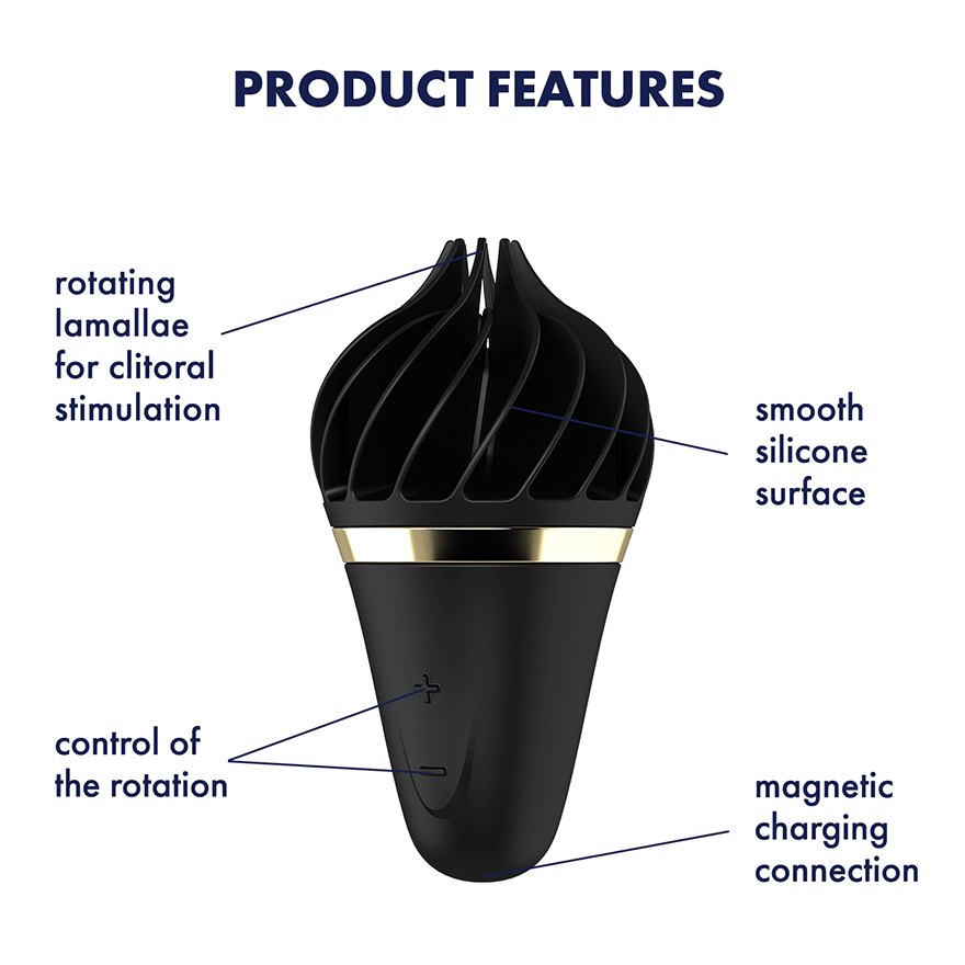 Pleasure yourself with a completely new sensation. Rotating soft silicone ribs arouse the clitoris with delicate yet firm intensity. Use this tender treat with your favorite lubricant and settle into a stimulating journey of ecstasy.Clitoral stimulation through powerful vibrations11 rotation settingsWhisper modeWaterproof to rating IPX7Skin-friendly siliconeEasy to cleanLithium ion batteryIncluding USB magnetic charging cable